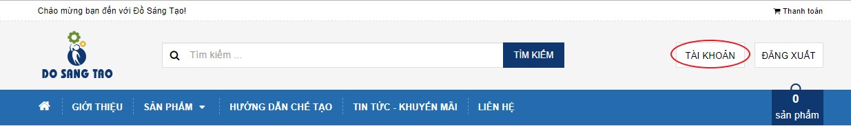 - Chọn vào TÀI KHOẢN để xem trang thông tin tài khoản.