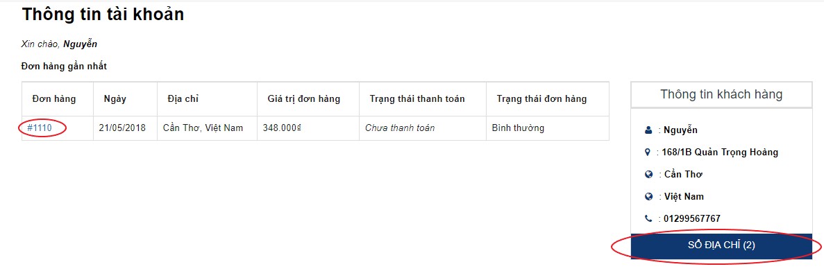 - Khách hàng có thể xem lại đơn hàng đã đặt khi click vào mã số đơn hàng.